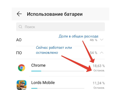 Что делать: откройте Настройки → Батарея → Использование батареи и ограничьте активность прожорливых приложений.